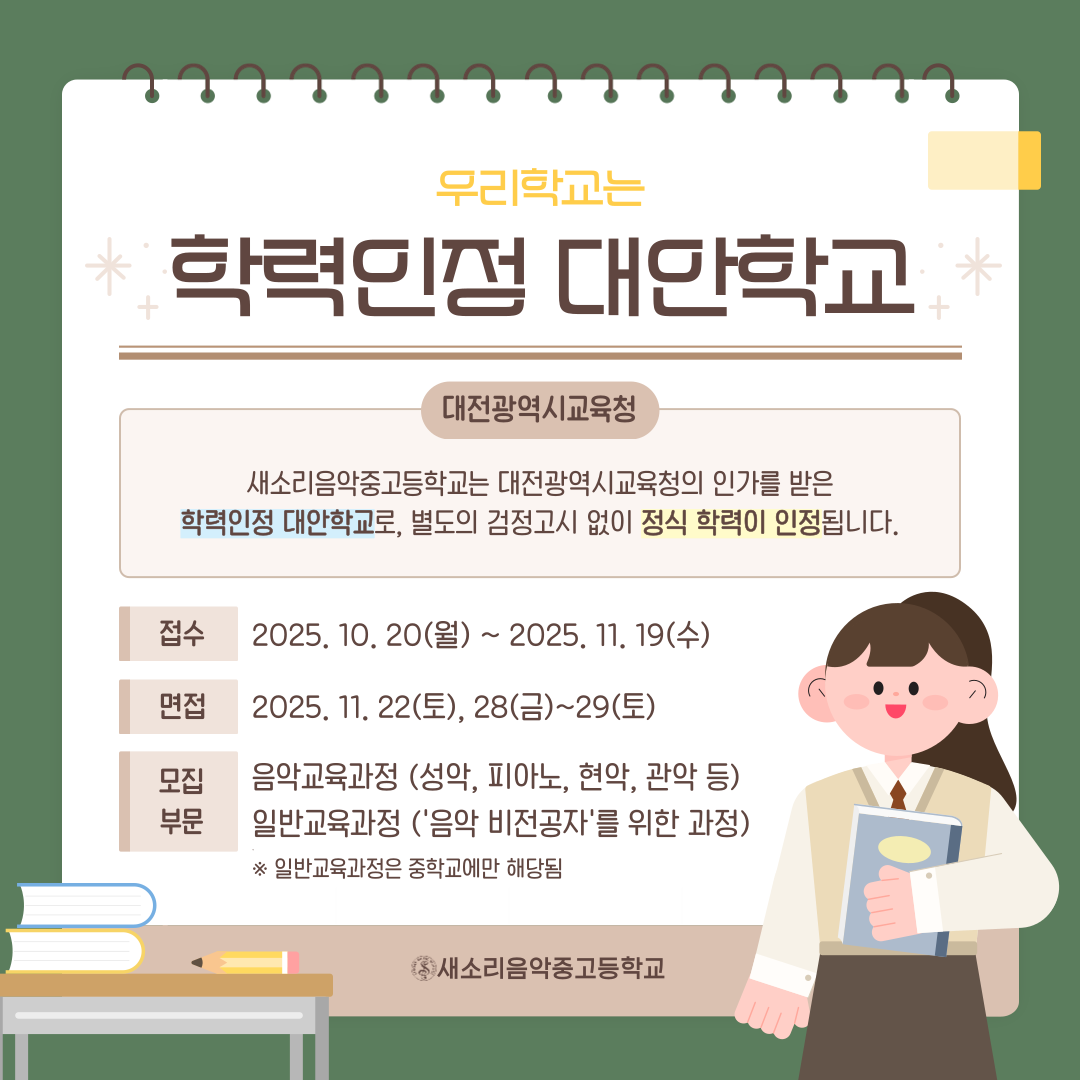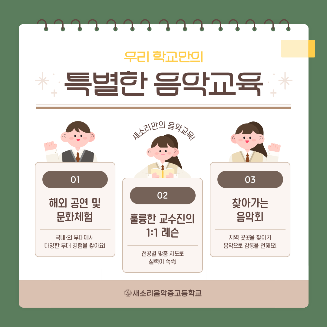 음악으로 꿈을 키우고, 배움으로 미래를 여는 새소리음악중고등학교!